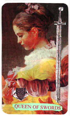 Esta não é a primeira vez que a Rainha de Espadas aparece em uma sexta-feira e ao invés de fazer cara feia eu aprovo e acho digno! :-) Saber amar também é saber equilibrar o coração e a mente, também é agir com estratégia e diplomacia. Há que se ter inteligência para saber amar... Saber amar de forma saudável, tranquila, equilibrada, saber nutrir de amor o próprio coração e saber nutrir o coração do outro também.